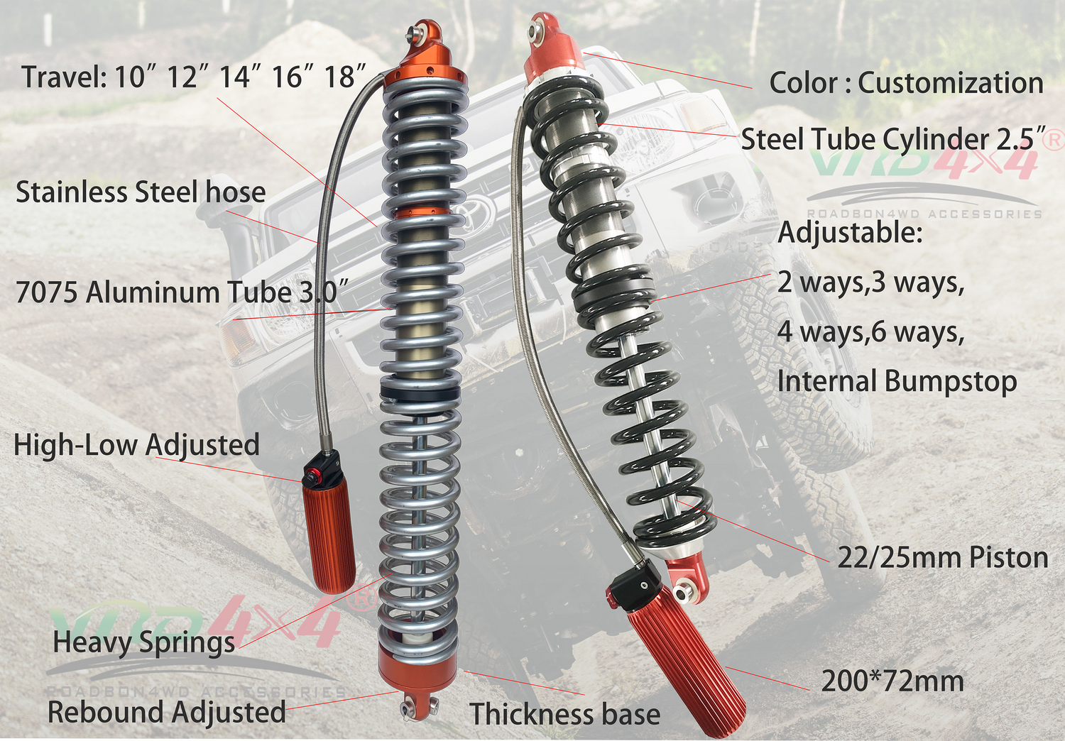 3 Ways Adjusted 7075 aluminum made 3.0 Coilover Shock Absorber 16" Travel